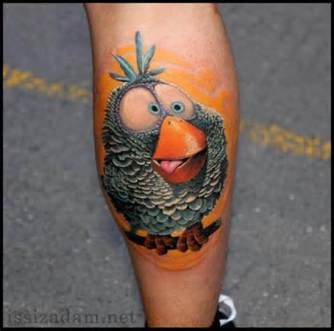 Animated Bird Tattoo On Leg